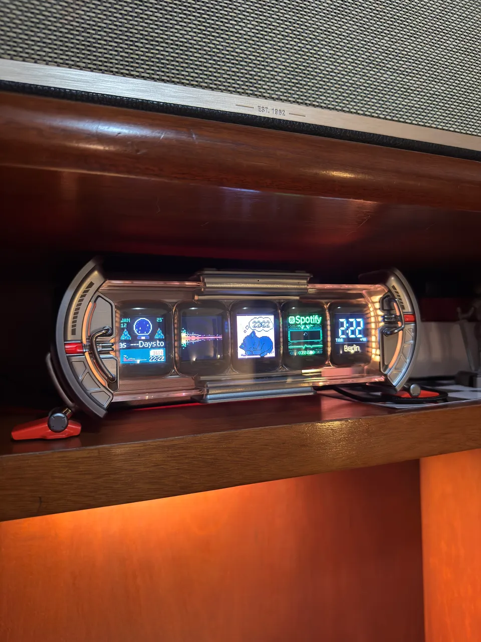 Cinco telas LCD customizáveis de 128 x 128 pixels