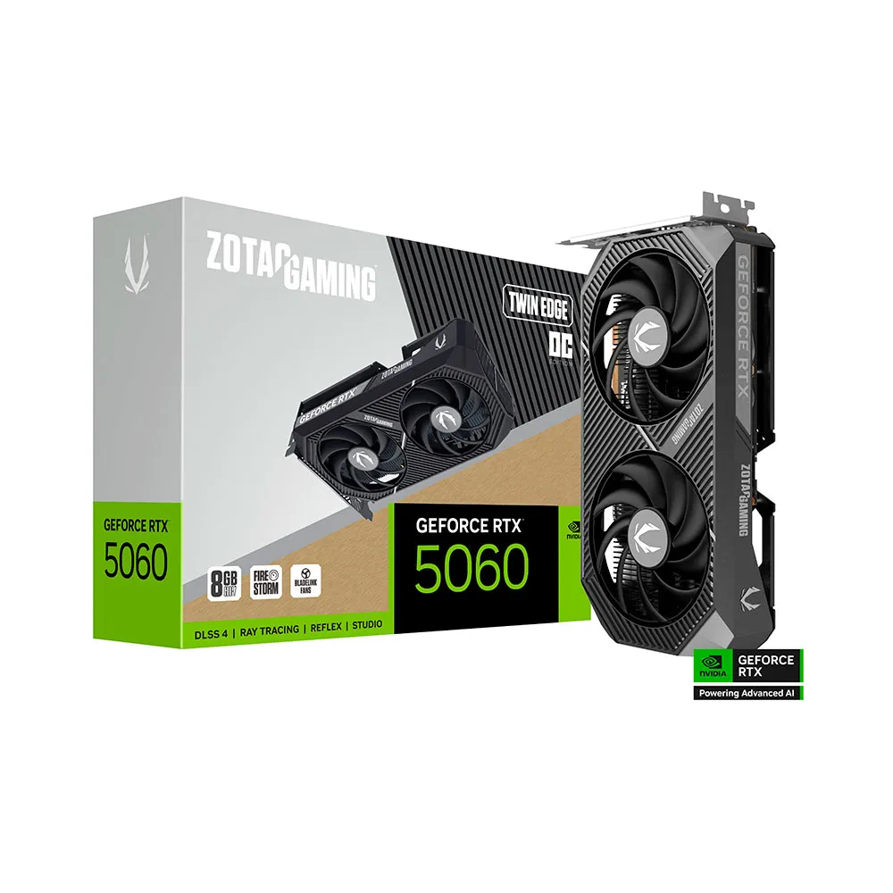 Placa de Vídeo Zotac GeForce RTX 5060 8GB 128Bits Twin Edge GDDR7 ZT-B50600H-10M Preto